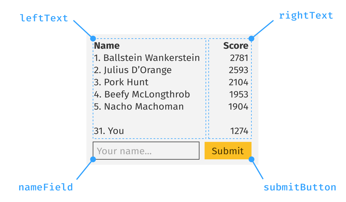 We will use the left column to display player names and the right one to display scores.